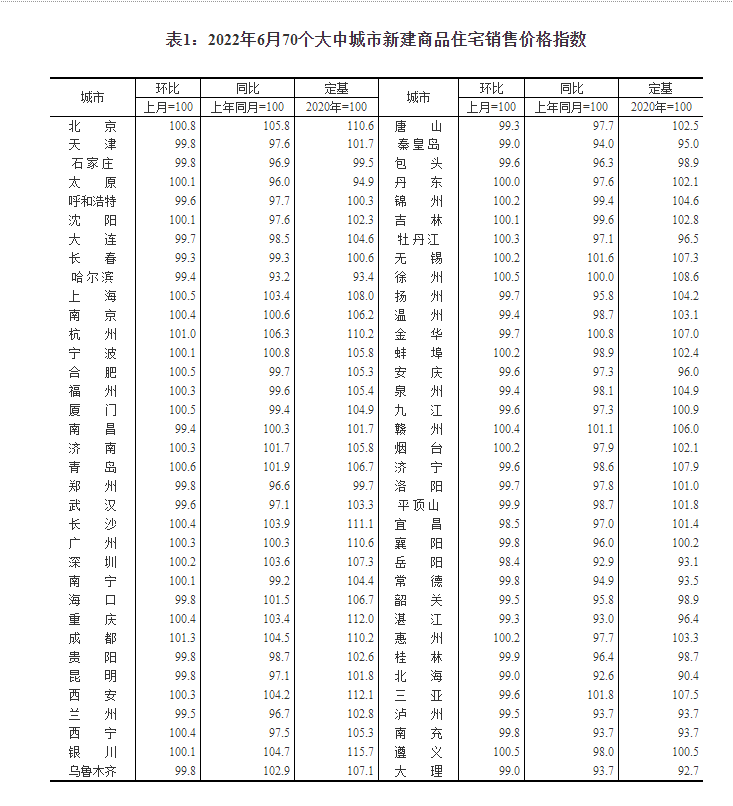 针对2022年7月15日国家统计局70城一手房价格指数,易居研究院智库中心研究总监严跃进认为: