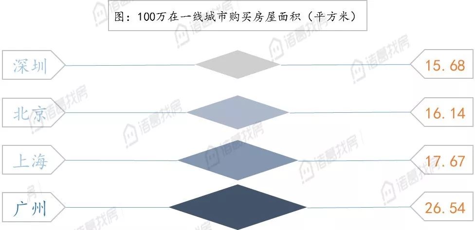 具体城市来看,深圳可购买面积最少,仅可购买面积为15.68平方米;