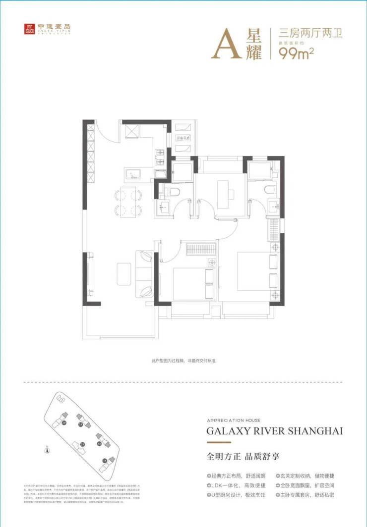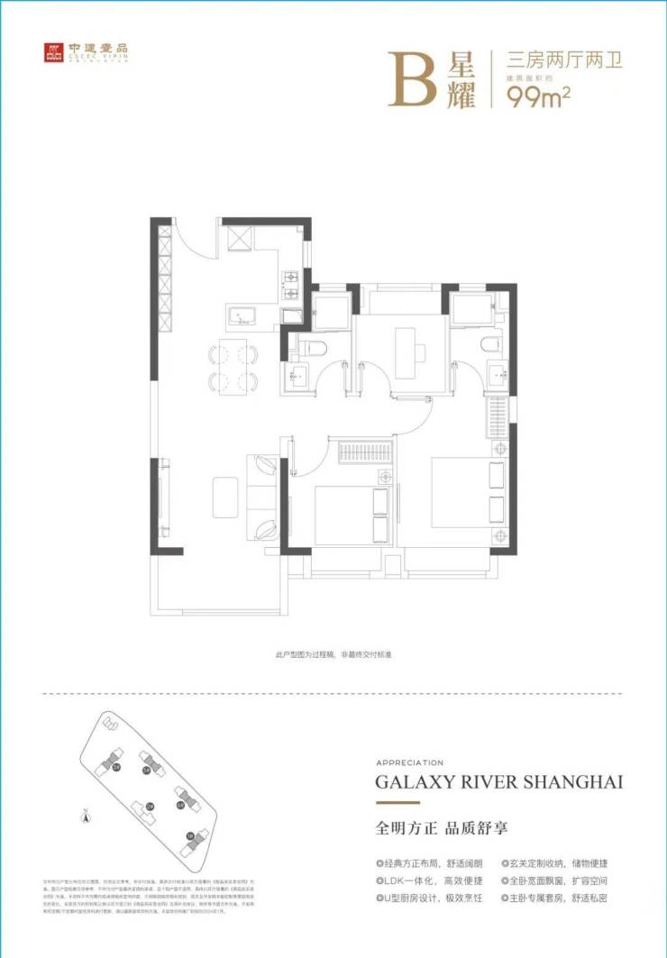 杨浦滨江南段核心位内环旁、黄浦江约500米中建壹品·浦江之星428套建面约99-183㎡3-4房预计5-6月一次性入市世纪汇展厅已经开放户型图如下:建面约99㎡3房2厅2卫建面约144㎡3房2厅2卫建面约18…