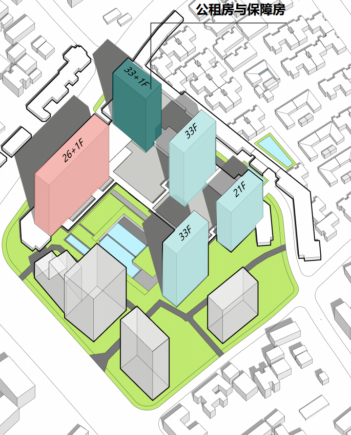 从曝光的设计方案来看,项目限高150米,两版方案,方案一将打造全百米高层,方案二将打造超高层+低密产品。