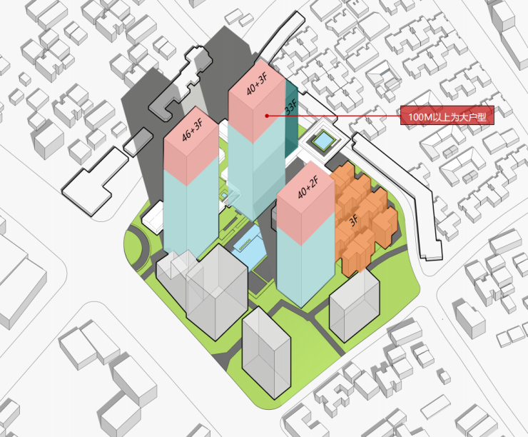而根据方案二,项目将打造340套建面约99㎡户型、82套建面约200㎡户型以及17套合院产品。