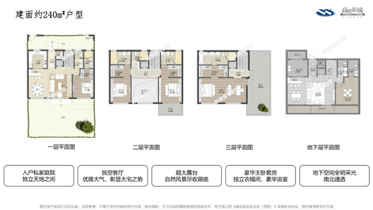 尼德兰半岛可售总套数140套,毛坯交付。产品共2种户型,约205m²及约240m²。