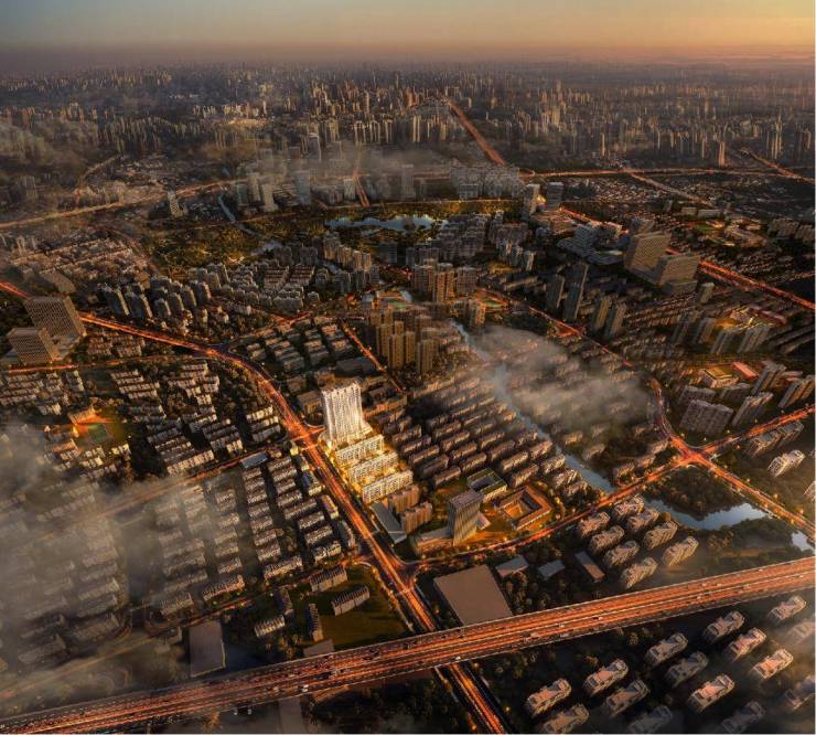百年静安中轴以墅为贵,作为静安心上稀缺的低密墅区——大华·静安年华更用极具想象力的“垂域浮岛“理念,将墅区生活核心的圈层会所,以悬浮于天空的姿态呈现。