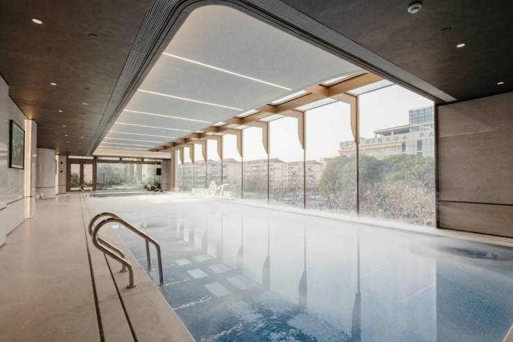 静安唯一私享悬浮泳池,宛如倒悬的天空之镜,致敬迪拜One&Only的设计哲学,约20万颗马赛克勾勒东方意境。畅游于此,恍如游弋于银河,自在舒展。