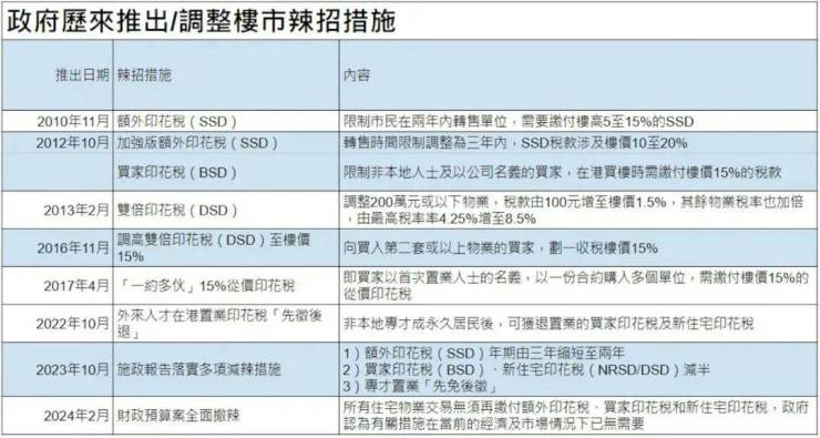 2月28日,香港特区政府财政司司长陈茂波发表2024至2025财政年度特区政府《财政预算案》。陈茂波宣布楼市全面“撤辣”:取消2010年以来推出新住宅印花税(NRSD)、买家印花税(BSD)及额外印花税(SSD)。