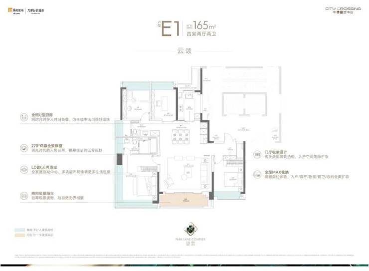 墅级采光面,朝南四开间设计,超阔面宽,具有墅级景观与采光面;“泛厨房化”设计,涵容“中西厨”功能区,高定餐厨,解锁“社交”新场域;270°全景飘窗,无遮挡全景飘窗,开阔视野,引窗外繁华与自然入室;全明创新主卫,主卫全明大飘窗,让可拓展空间突破寻常;LDBK+X宽厅,构造大客厅,妥帖收藏家人的一切欢然时光。