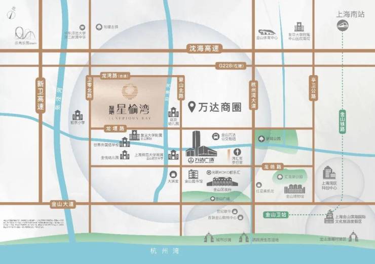 复地·星愉湾位于金山都会芯,倚靠旧港河,距金山万达仅约700m(地图直线距离),周边汇聚前京中小幼、世外等知名全龄化的优质学府,及复旦大学附属金山医院等优质资源配套,更是纵享三维立体交通,距离金山卫站约4.5KM,可一站直达上海南站,出行便捷,尽享国际化都会生活体验。