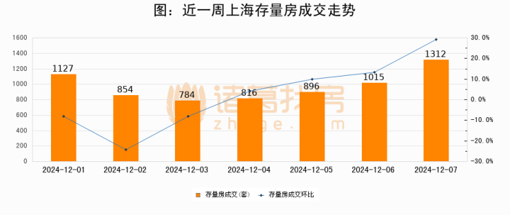 【上海成交日报】12月07日二手房1312套;涨价房源592套