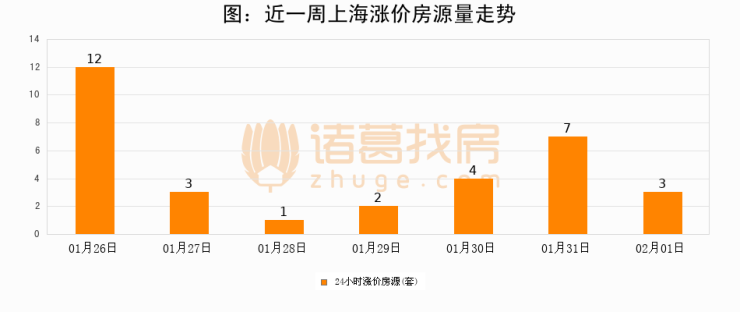 根据诸葛找房数据显示,上海24小时涨价房源量为3套,较01月31日减少4套,环比下降57.1%。与此同时,涨价房源占比小幅回落,对于购房者来说是一个入市窗口期,购房者可抓住时机入市。