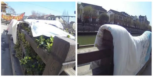 在针对乱晾晒问题,古镇管委办联合居委会,坚持教育为先、劝导为主,先找到当事人,面对面劝说,督促其将乱晒的衣物等收起来。但因缺少晾晒区,成效甚微。“堵不如疏”,借着这次整治改造,古镇管委办在公共区域安装了专门的晾衣架,拉起绳子,方便居民统一晾晒。