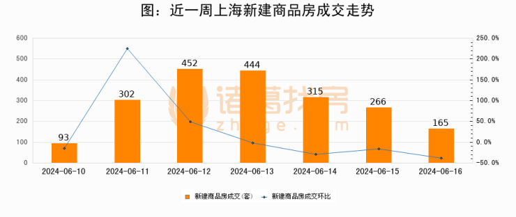 【上海成交日报】06月16日新房成交165套;涨价房源211套