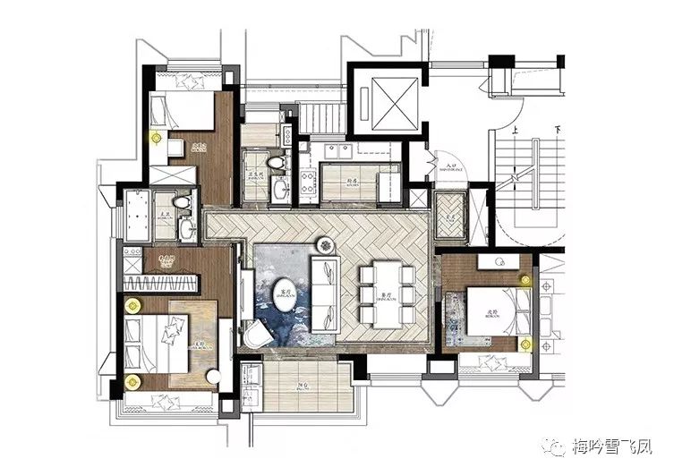 为增加入户尊崇体验,新城西岸公园将五星级酒店专享双入户精装大堂引入至项目——超5米精装大堂,采用对称式门堂形制,南向入户大堂面积约16.5㎡,净高5.9米;北向入户大堂面积约25㎡,净高5.3米,轩阔大气,增强尊崇大气的入户仪式感。在大堂功能上,采用“七合一”功能配备,签到区、门禁一键解放双手,给予真正的智能入户体验,全明私家电梯厅,给予国际精英者由外而内的相匹配舒适体验。