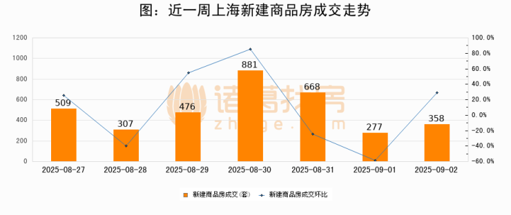 【上海成交日报】09月02日新房成交358套、二手房491套;涨价房源131套
