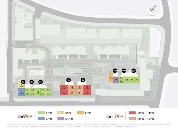 项目由6栋9-27层住宅+1栋8-14层保障房+4栋5F办公+部分商业以及配套用房组成。住宅产品面积主要有约99㎡、145㎡、179㎡三种。