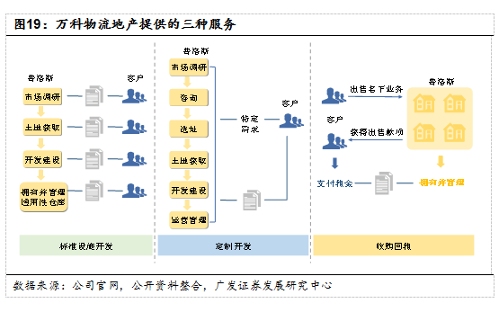 第二,规模化的扩张使得万科物流仓储已经形成全国化的布局,已经布局20多个省份,32个城市,有助于增强客户粘性。同时,万科能够为客户提供标准园区设施开发、定制开发、收购回租等多种服务,多元化的深度服务也为公司的招租运营提供支撑。