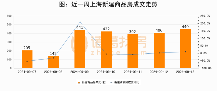 【上海成交日报】09月13日新房成交449套、二手房541套;涨价房源96套