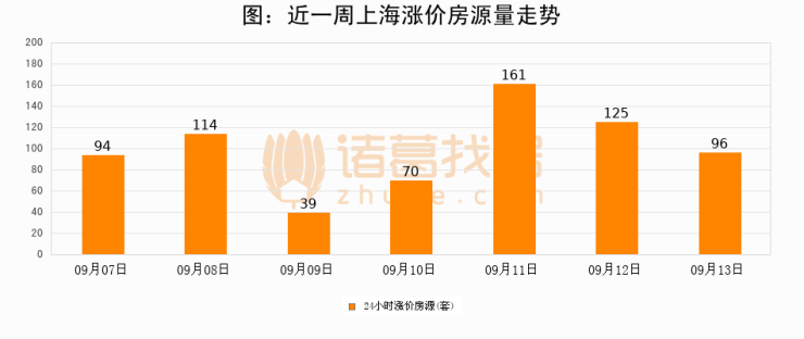 根据诸葛找房数据显示,上海24小时涨价房源量为96套,较09月12日减少29套,环比下降23.2%。与此同时,涨价房源占比小幅回落,对于购房者来说是一个入市窗口期,购房者可抓住时机入市。