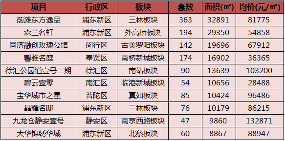 据统计数据显示,10月上海新房成交面积TOP10的排行榜单中,排名靠前的有不少高端的改善型项目。位居排行榜榜首的为前滩东方逸品,成交面积32891平方米,成交均价高达81775元/平方米;该项目位于浦东三林板块,由于受前滩规划利好,项目的成交量和成交价都很可观。