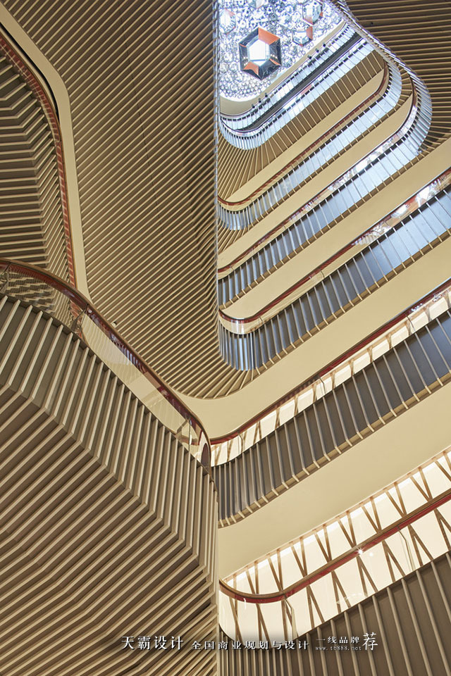 项目周边的环境业态,包括小型的餐馆和精品店都在这个垂直建筑外立面中反射出来,并且从街道上就可以被看到,这大大提高了该项目的吸引力及地标性。这一点,天霸设计小编不得不说,这与我们打造的甘肃兰州名城广场的中庭有异曲同工之妙,都为整个项目起到了点睛之笔。下面与大家分享天霸设计打造的兰州名城广场中庭设计效果图。