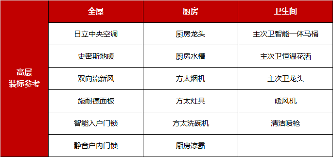 装修配置上,金地采用全屋高定精装,日立中央空调、地暖、新风系统三大件一应俱全。厨卫均选用一线知名品牌,主次卫智能马桶、恒温花洒,厨房带洗碗机、凉霸、碗碟拉篮,还赠送入户玄关柜、智能入户门锁、厨房金属移门……