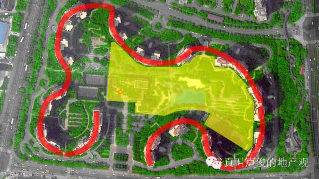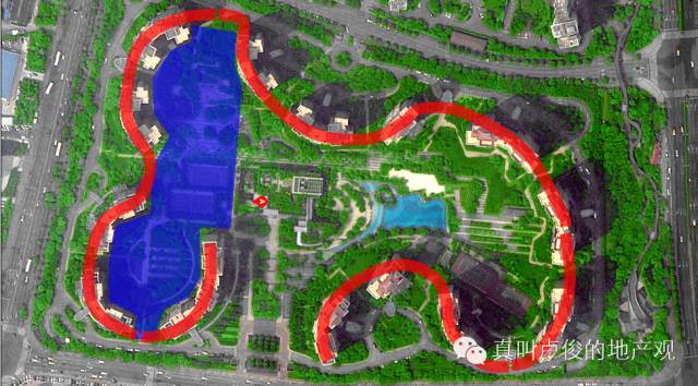 首先,所有人都明白,仁恒河滨花园这样排布的初衷就是通过围合式的排布方式使得景观价值较大化,较大的核心组团
