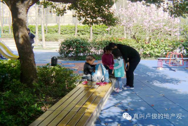 下面是非常敞开且通透的区域,人性经过非常方便,而且因为有树荫的遮盖,小孩非常愿意在这一块玩耍,认真逛过这个小区的朋友可能会发现这个小区里大量的这样绿化