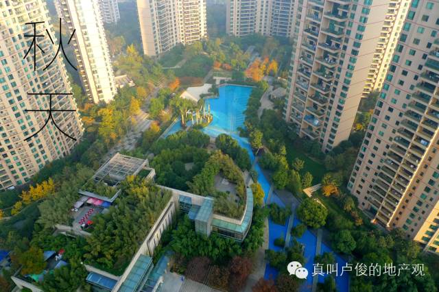 因为仁恒大多采用围合式社区规划,因此大区景观可以做的很出彩。这和示范区展示精彩而交付平平的社区不同。仁恒的社区,大多采用中央大水景,搭配丰富的构筑物,硬质景观造价高。但仁恒的社区,交付十年依然崭新。