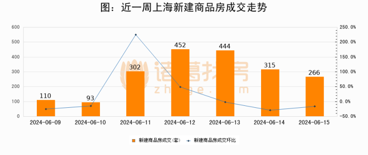 【上海成交日报】06月15日新房成交266套;涨价房源214套