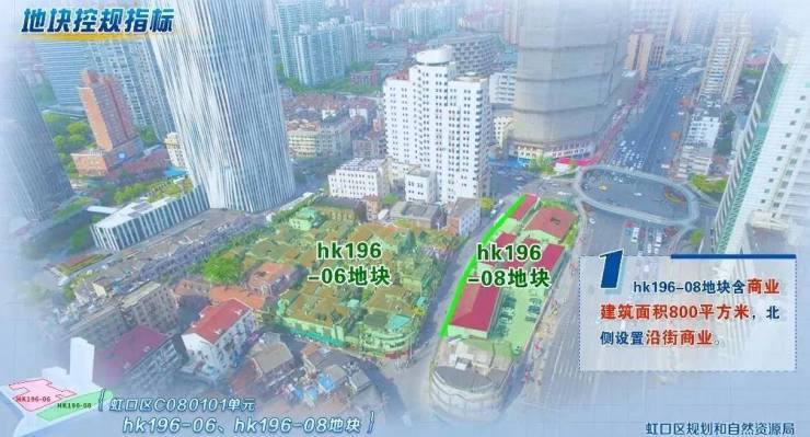 地块位于虹口四川北路板块,距离10号线四川北路站仅约300米。出让面积10289.2㎡,hk196-08地块为普通商品房、容积率6.2;hk196-06地块为商业用地、文化用地,容积率1.39。