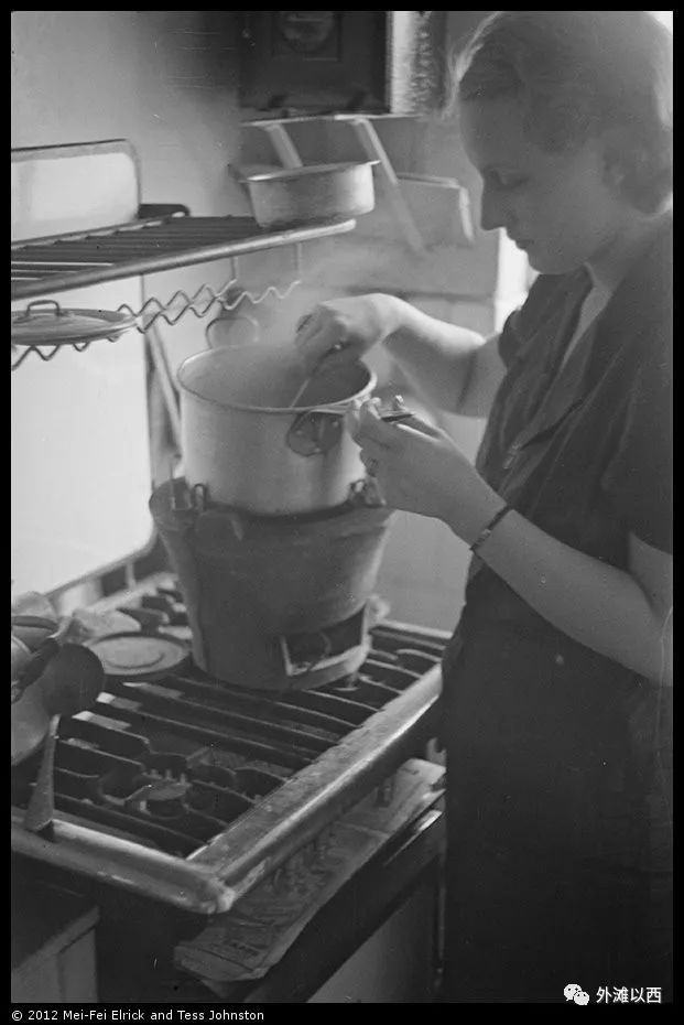 伟达饭店后来断了煤气供应后,饶世和太太用小炉子做菜。