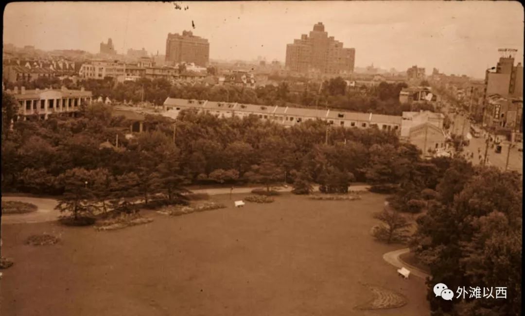 下图的老照片里画右侧可以看到伟达饭店一点点,这个地块不是兰维蔼公园,而是东湖路和襄阳路夹出来的三明治地块,曾经有个很大的洋房,后来成为法国学校,the College Sainte Jeanne d'Arc。