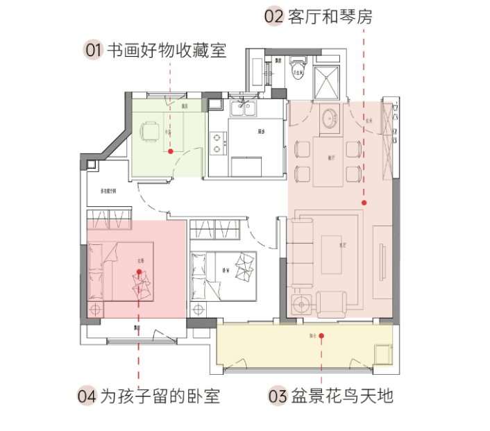 把这套89㎡的三房给父母居住是另一种“空间可能” ,老夫妻能在这里自在安排属于自己的幸福的晚年时光,买一架钢琴放在客厅作“琴房”,实现年轻时的“心愿”,还可以为“子女”和“孙辈”留一间卧室。