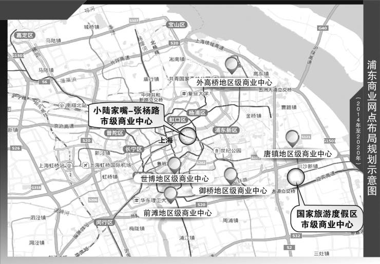 根据《规划》,2014年至2020年,浦东将布局两大市级商业中心,分别是小陆家嘴-张杨路商业中心和国际旅游度假区商业中心。小陆家嘴-张杨路商业中心总用地面积约219.1公顷,主打高端路线。此外,还有5个外环线以内的地区级商业中心,分别是外高桥商业中心、前滩地区商业中心、唐镇商业中心、世博园区商业中心和御桥地区商业中心。