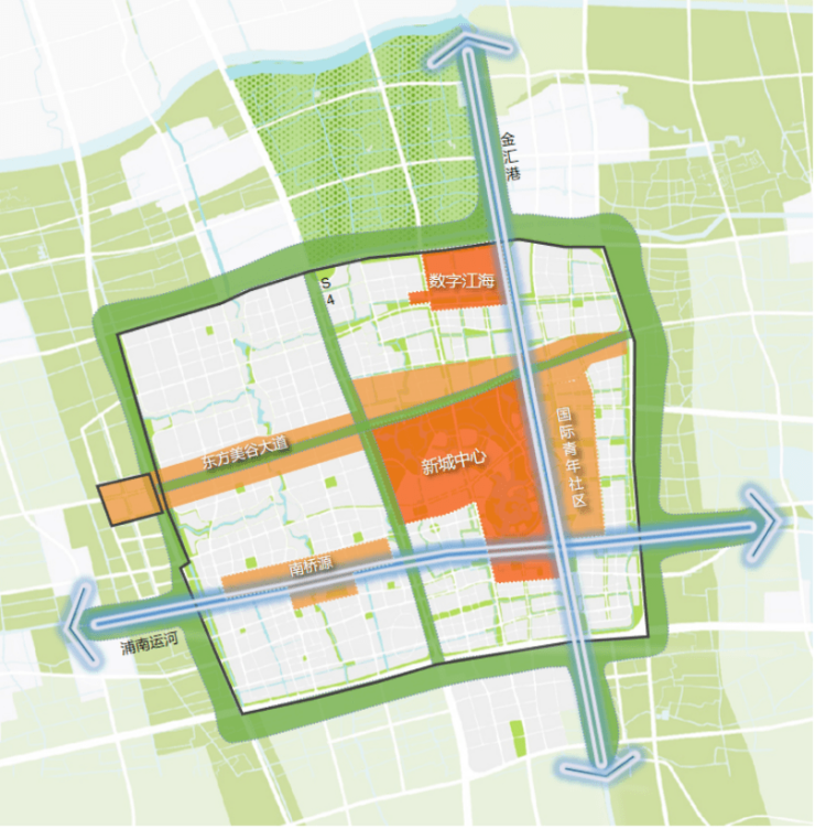 2021年3月,“十四五”规划提出要提升长三角一体化发展水平。作为长三角城市群的核心城市,上海提出坚持“一极三区一高地”战略定位,紧扣“一体化”和“高质量”两个关键,进一步发挥龙头带动作用。面对新形势,奉贤提出一江一河一湾一港的意向发展格局。