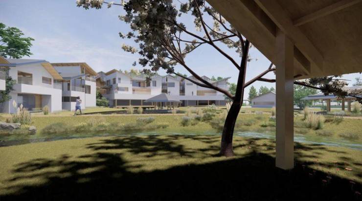 龙泉渡引入圩田般自然、圆润的形态,通过平台与连廊的连接形成多维度的变化;场地与建筑相互交织,形成立体的田园综合体。