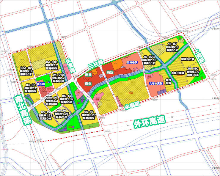 位于永泰路与三新路交叉口的15-11地块,拟新增一所九年一贯制学校,用地面积约4.1万平方米,毗邻三林中学;西侧04A-04地块则规划新增一所幼儿园,进一步完善基础教育布局。