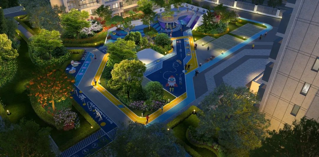 象屿地产打造全龄家庭参与的社区景观,关注孩子寓教于乐的健康配置,更关注全龄人群的健康配套设施,将口袋公园、主题景观、小大人世界、萌宠天地、植物教育园、全龄运动场、夜光跑道等环绕其中,社区成为每个人的健康乐园,让业主在每一个角落享受放松与悠闲。针对不同的产品系,设置“星梦探索乐园”等不同的主题乐园。