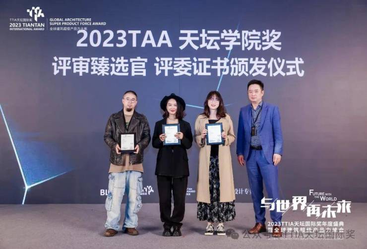 峰会同期举办了TTIA天坛国际奖年度人物榜单发布及评审臻选官评委证书的颁奖仪式,分别为房企设计负责人颁发了2023TTIA天坛国际奖超级产品力研发设计领军人物和2023TTIA天坛国际奖超级产品力研发设计官;为TTIA天坛国际奖和TAA天坛学院奖的评委分别颁发了评审臻选官评委证书。