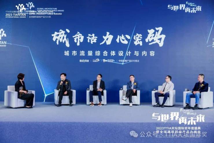 在此次峰会上,由悦榕集团中国区设计咨询部负责人/助理副总裁周影波,新城控股设计副总经理张程凯,时代商业产业集团副总经理沈鹏,成都轨道城市投资集团产品设计负责人陈阜林,金茂酒商产品研发部总监傅宁等展开了一场主题为《城市活力心密码》的城市流量综合体设计与内容的高峰对话。