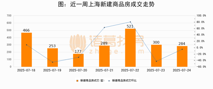 【上海成交日报】07月24日新房成交284套、二手房592套;涨价房源138套