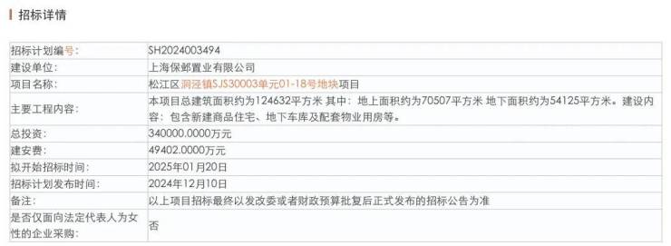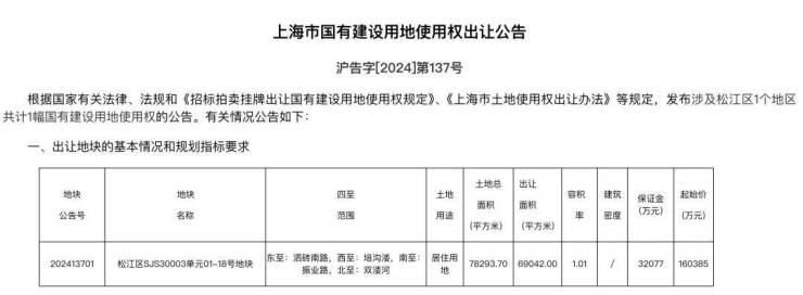 网传保利要拿?起始楼板价2.3万/㎡,松江洞泾地块明年1月24日开拍
