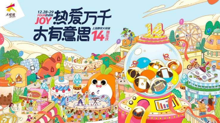 "热爱万千,大有意思”,在静安大悦城14周年庆之际,商场推出指定零售店铺79元团100元礼金券、14元秒杀100元代金券等多项促销满赠活动。12月28日当天,6大庆生活动福利满满。现场14大IP齐聚一同庆生,包括数码宝贝主题限定快闪全国首站、aespa 'Whiplash' 中国大陆首次快闪、迷你你游乐园限时快闪、小红书全国首场谷子展在内的多重活动为大家带来一场盛大的年末嘉年华。