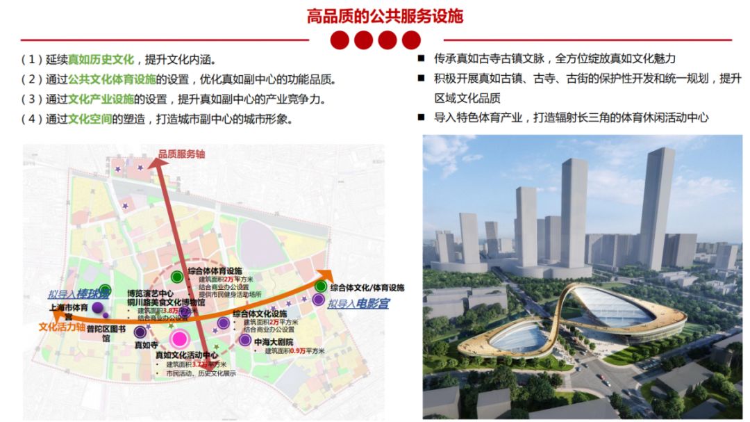通过公共文化体育设施的设置,优化真如城市副中心地区的功能品质