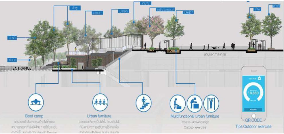 社交区域是Whizdom 101的核心,为人们提供聚会、交流的空间和休闲、娱乐等多功能场所。人们在此放松身心,简单的小憩或是漫步,便能真切感觉到社区带来的美好生活。商业区的设计则以在泰国首次尝试的规模,将室内空间与户外空间融合到一起:多层退台式坡地景观设计,面积达8000㎡的中央绿地花园,1.3公里贯穿综合体建筑内的外自行车道和慢跑道——“Whizdom跑道”等等,都为业主们的户外生活提供了更为丰富的可能。它还将拥有泰国较大的垂直运动俱乐部之一,享有约10000 ㎡的空间。该俱乐部将由世界先进的私人俱乐部和酒店设施运营商与持有者“ClubCorp ”公司管理。