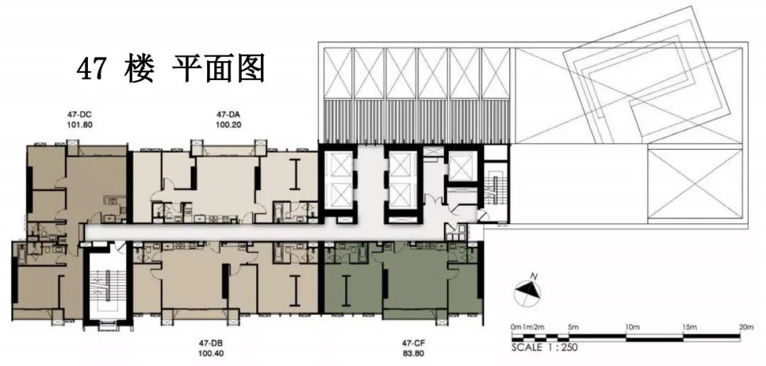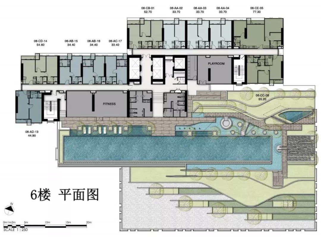 Whizdom 101 社区用地中开放面积的占比非常高,约为65%,其中30%用于绿化。社区建筑总面积约340000㎡,含20000㎡零售区、30000 ㎡租赁式办公区以及140000㎡住宅区。社区住宅拥有高于行业标准的30年质保服务,以及新风系统和数字智能系统。