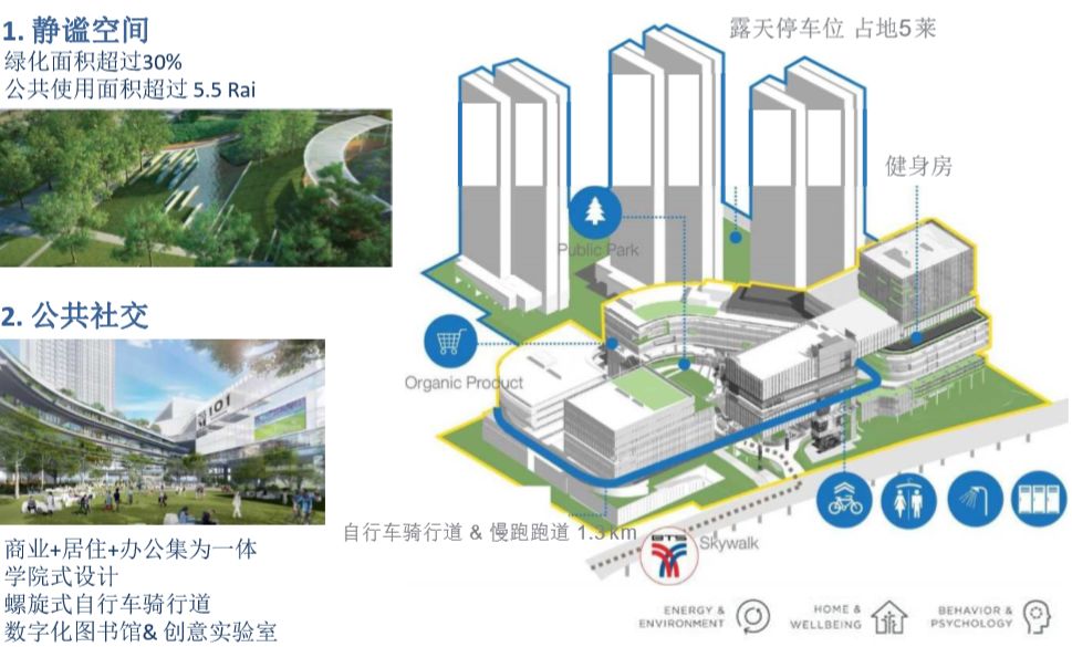 Whizdom 101耗资300亿泰铢,打造泰国排名前列也是少有一个包含生活、办公以及社交于三大功能于一体的综合体,包含三栋住宅公寓楼,以及20万方的商业,包括13万方的零售及7万方的办公,置业Whizdom 101,得到的不仅是一套住房,更是一个广阔的社交空间和公共空间。
