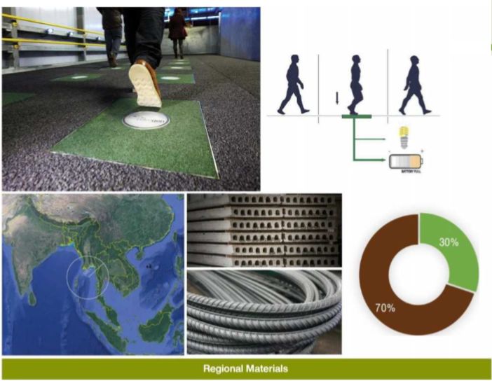 在日常步行中,脚步踏过摩擦产生电能,可供给公共区域部分电源的使用。