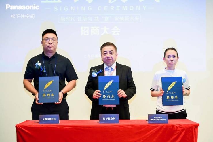 会议现场,无锡国联信托、鄂尔多斯桐时优住两位意向加盟商客户与松下住空间达成合作意向,共同成长、共富未来。无锡国联信托签约代表陈宏飞、鄂尔多斯桐时优住总经理张钰婕与松下住宅设备BU WSH推进室室长德岛圭一共同执笔签约,开启未来新征程。