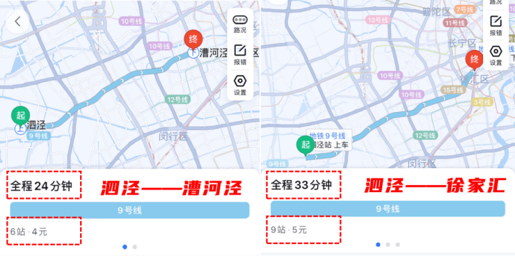 1.1 3站七宝、6站漕河泾、9站徐家汇,通勤效率非常高
