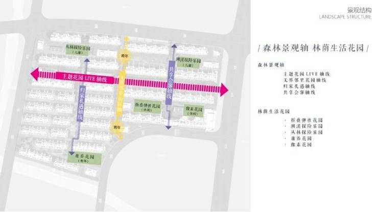 泗泾项目设计主体为“自然森活+”由300M季相花园轴线+200M无界邻里花园轴线构成大区特色的色叶林带主题景观。建筑风格现代简约,景观延续建筑的风格——打造都会繁华的自然森居生活体验。大区整体空间结构为“四轴八园”,我们将泗泾古镇的古朴气质与上海现代都会生活结合,在大区中描绘自然与生活的点滴画面。